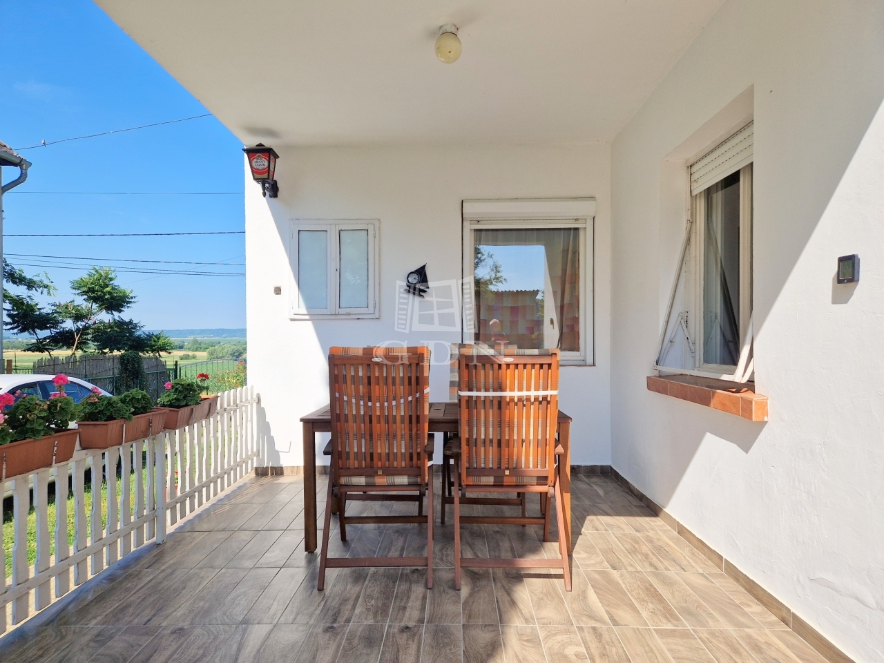 - helyiségei 73 m2-en: előtér, közlekedő, konyha, 2 háló, egy spejz, egy fürdőkáddal ellátott fürdőszoba. valamint egy nyári konyha, és az ott található külön helyiségben lévő toalett.