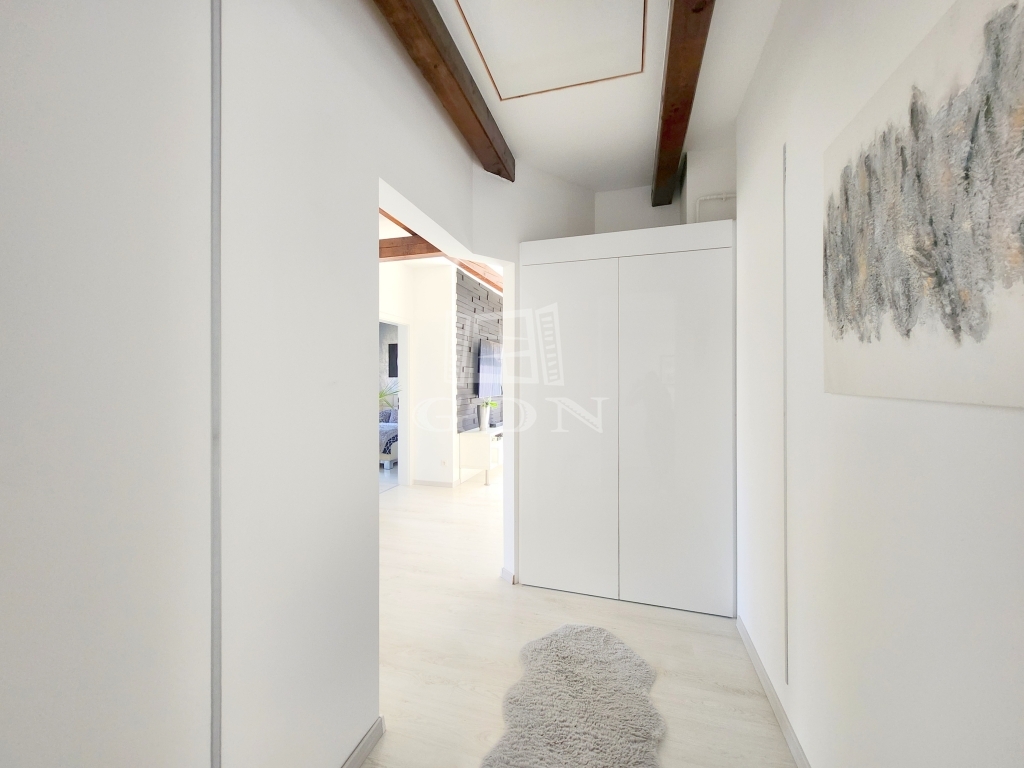 Igazából mindegy, hogy óriás ablakaiba, látszó gerendáiba, " jakuzzi sarkába" vagy mérhetetlen nyugalmába szeret bele, mindenképp a legjobb választás lesz, hiszen letisztult színhasználatával, prémium burkolataival, praktikus vonásaival és klasszikus elemeivel egy modern megjelenésű, minden igényt kielégítő otthonnak lesz büszke tulajdonosa!