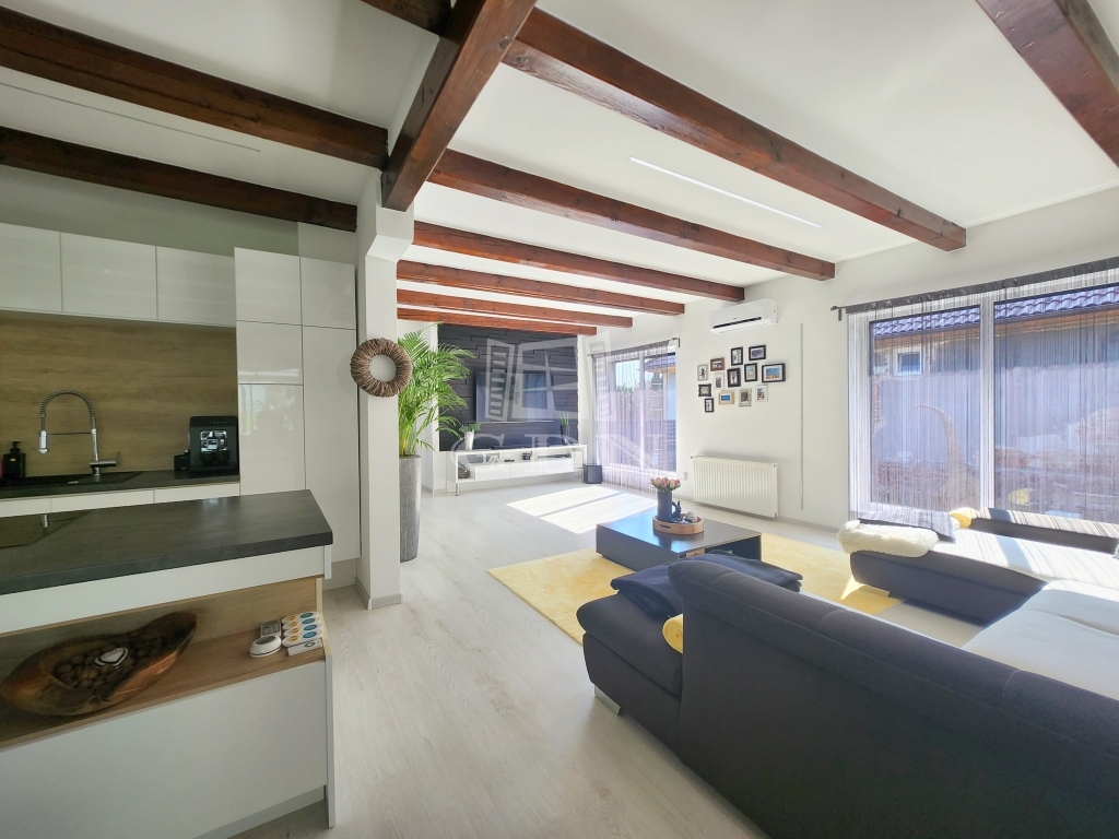 Bak csendes zsákutcájában vált eladóvá KOMPLETT BÚTORZATTAL! ez az újszerű állapotú, minden igényt kielégítő, csodálatos milliőben található 120 m2 - es családi ház, egy 80 m2 - es páratlan hangulatú terasz ölelésében!