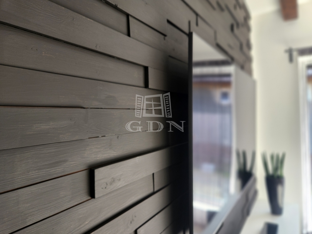 A gerendákat csiszolták, egy Tirolból hozatott szerrel gondozták, majd 30 cm vastag szigeteléssel látták el. Aljzata, födéme szintén szigetelt, teteje cseréppel fedett. Falai fával és antracit panelekkel burkoltak, utóbbi teljes mértékben gondozásmentes.