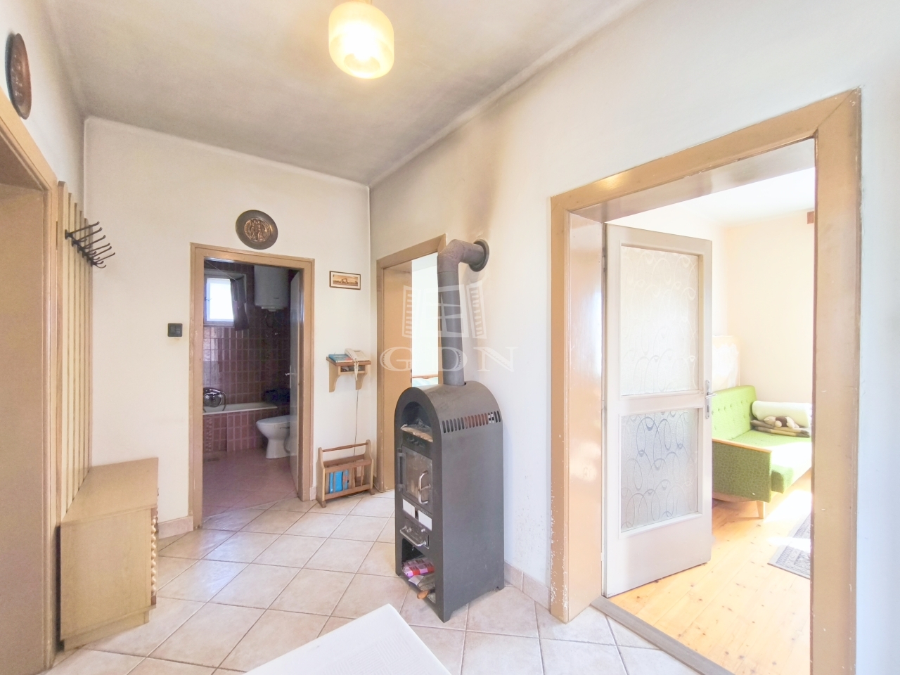 A fűtés jelenleg fa tüzeléssel megoldott, a melegvízellátásról villanybojler gondoskodik.