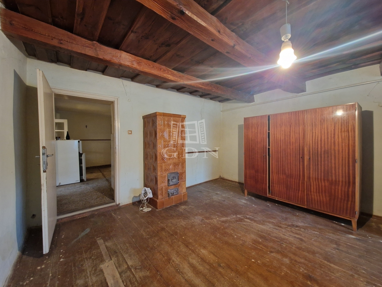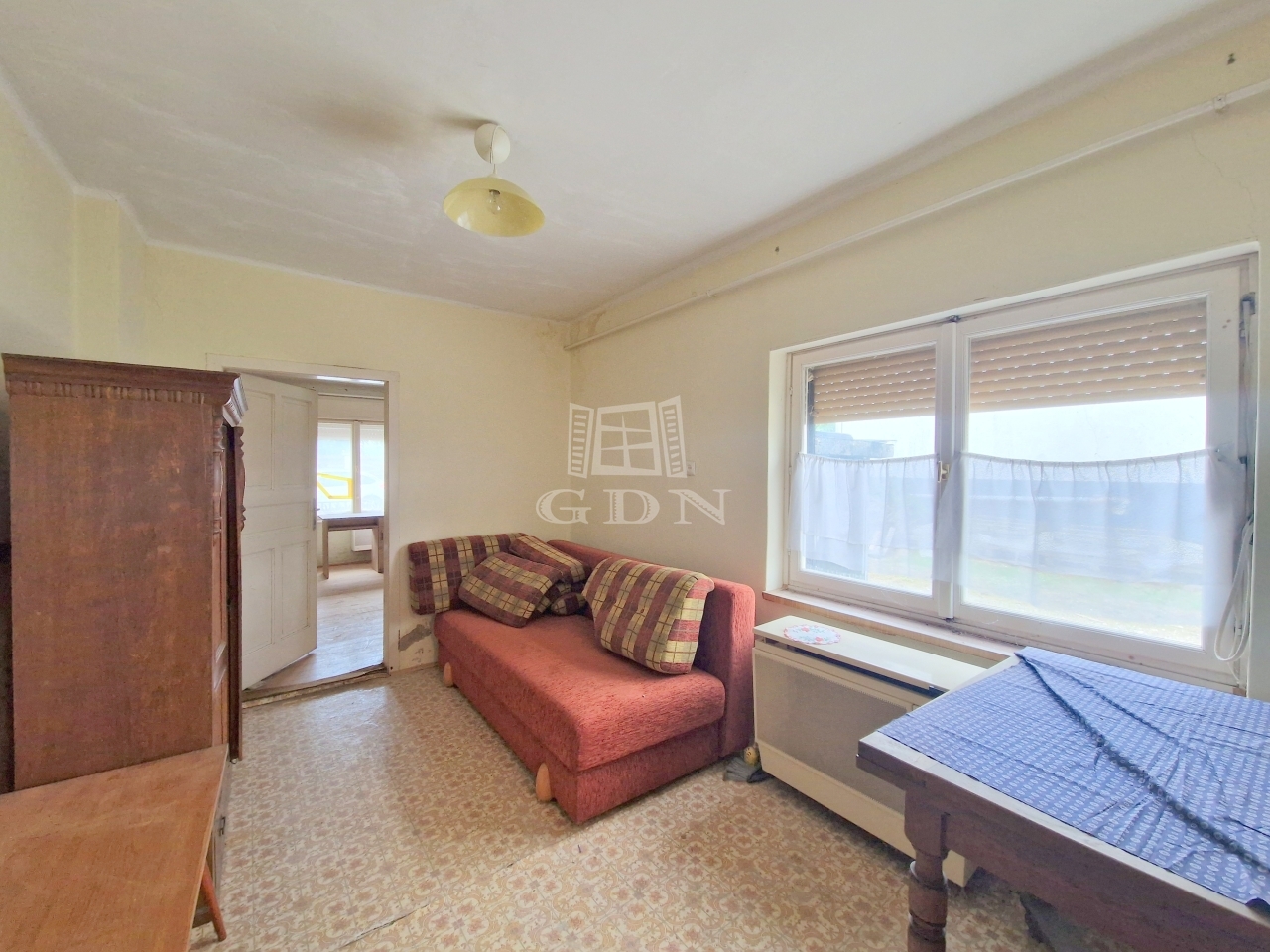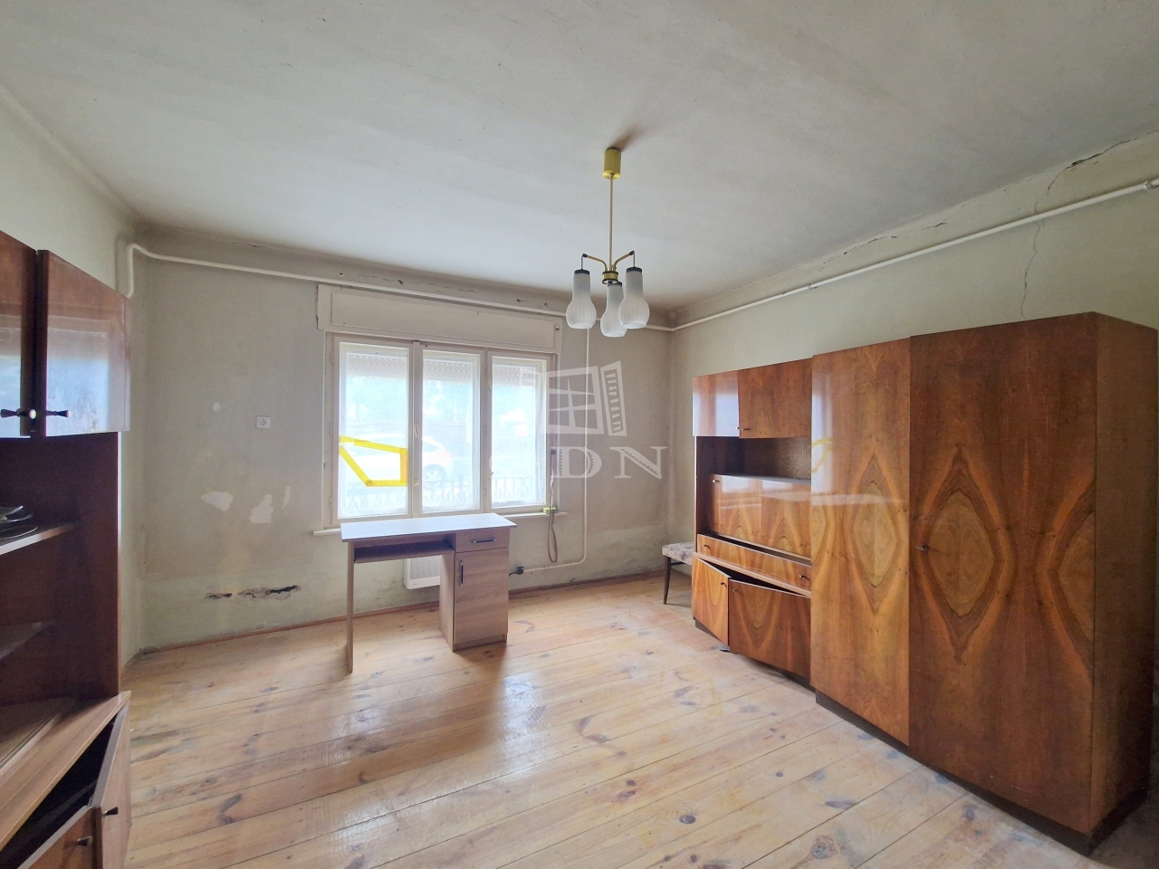 Az ingatlan jelenlegi elosztása kiváló, tágas terek formájában ad helyet egy előtérnek, egy konyha - étkezőnek, egy spejznek, egy zuhanyzóval felszerelt fürdőszobának, egy külön helyiségben található toalettnek, valamint kettő nagy méretű hálószobának.