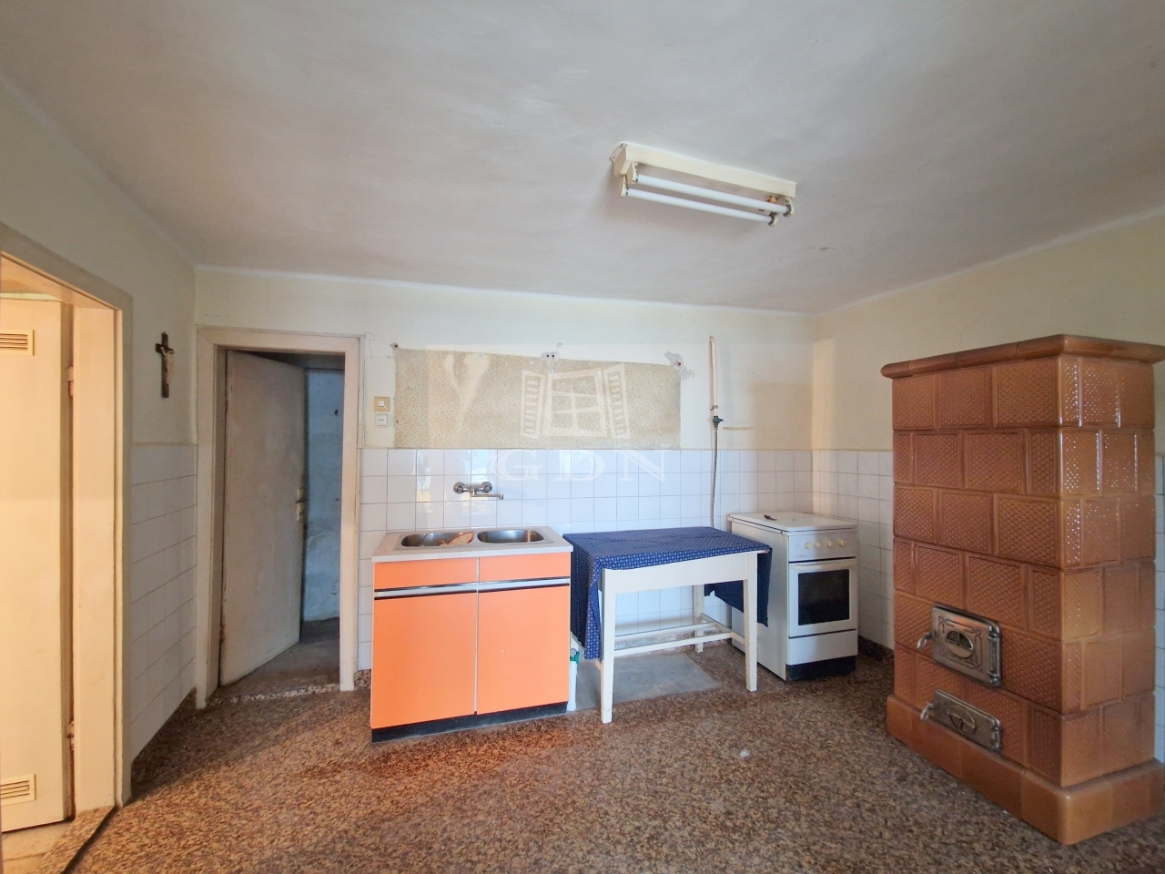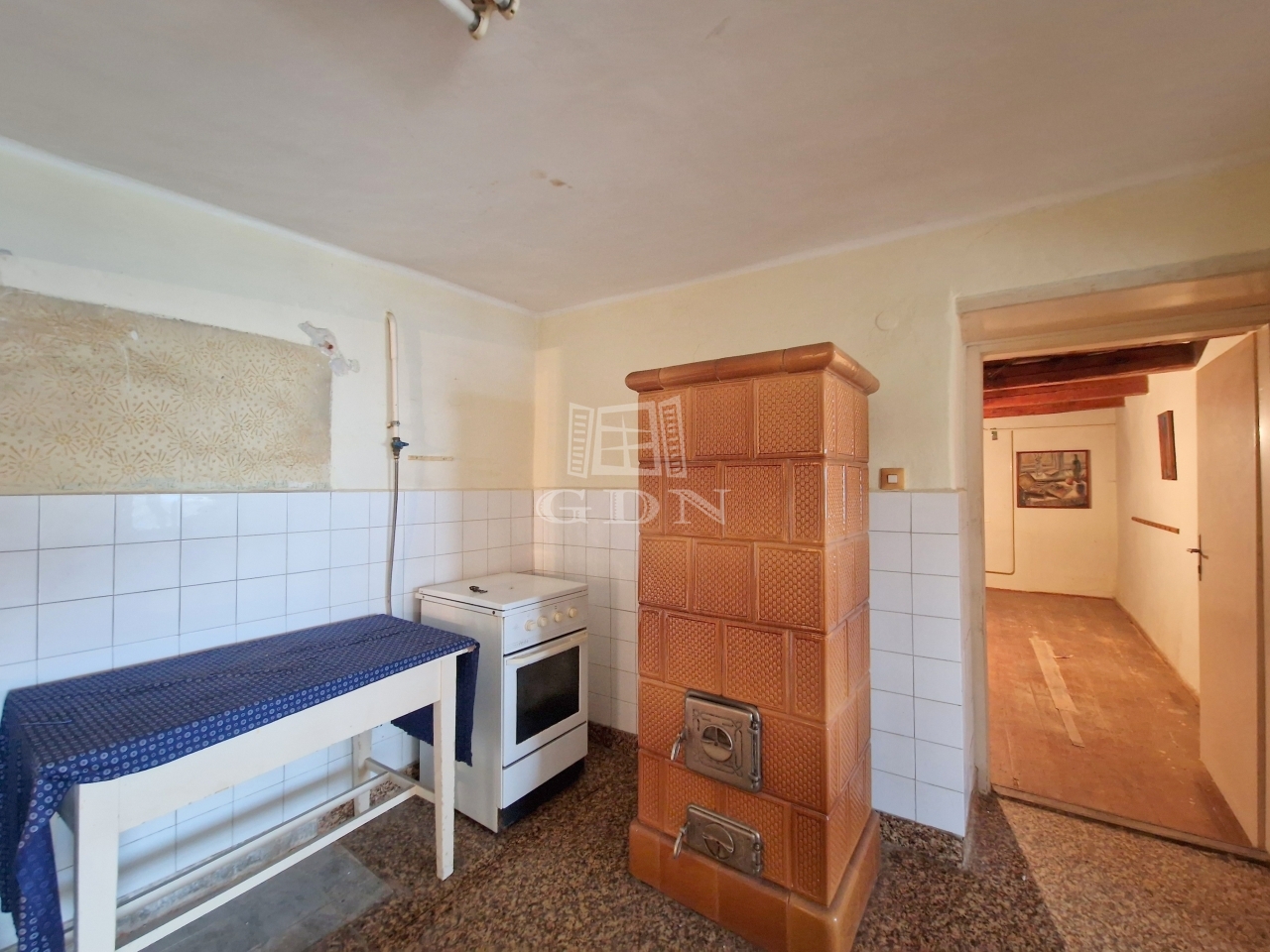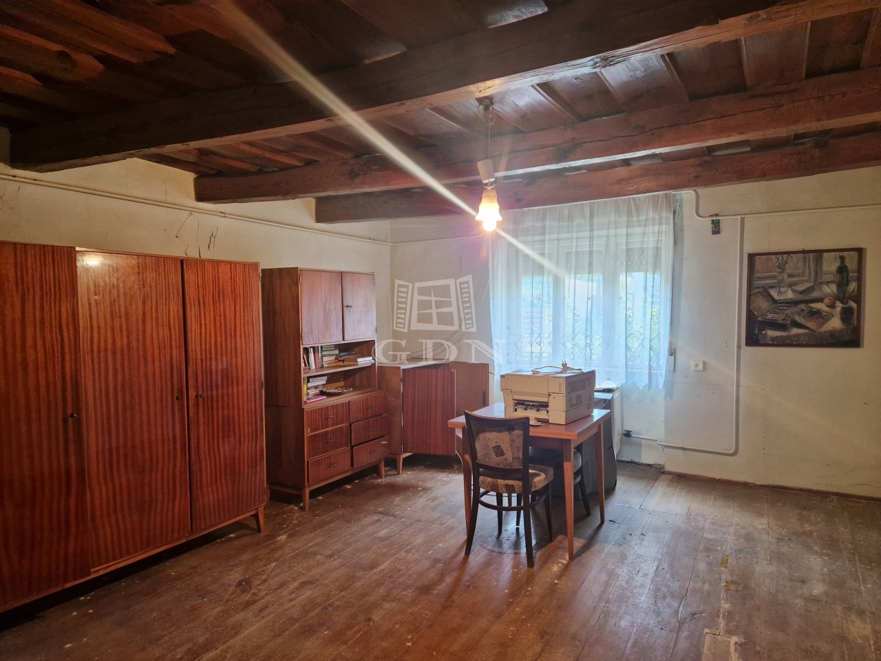 Az ingatlan jelenlegi elosztása kiváló, tágas terek formájában ad helyet egy előtérnek, egy konyha - étkezőnek, egy spejznek, egy zuhanyzóval felszerelt fürdőszobának, egy külön helyiségben található toalettnek, valamint kettő nagy méretű hálószobának.