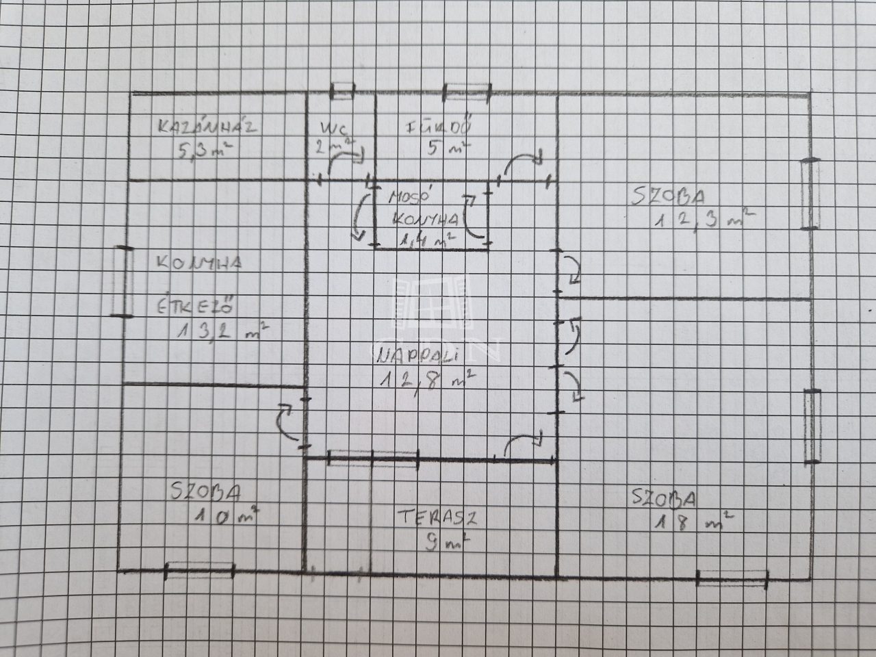 - 82 m2-en ad helyet egy előtérnek, 3 szobának, egy konyhának, egy mosókonyhának, egy fürdőkáddal felszerelt fürdőnek, egy külön helyiségben található toalettnek, valamint egy kazánháznak.