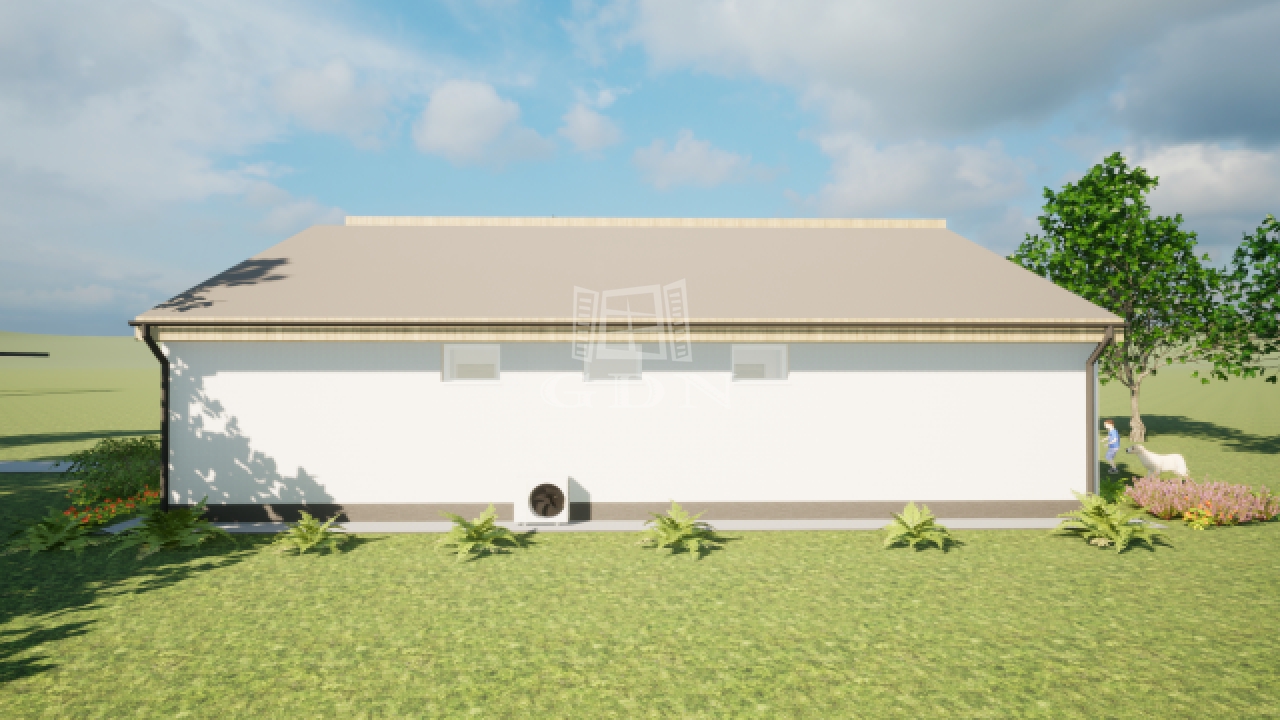 Egy lenyűgöző, 1874 m²-es telken épül meg ez a modern, letisztult stílusú családi ház, ahol minden adott a nyugodt, minőségi élethez.