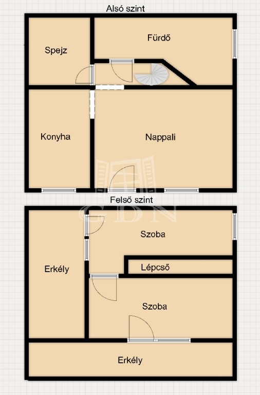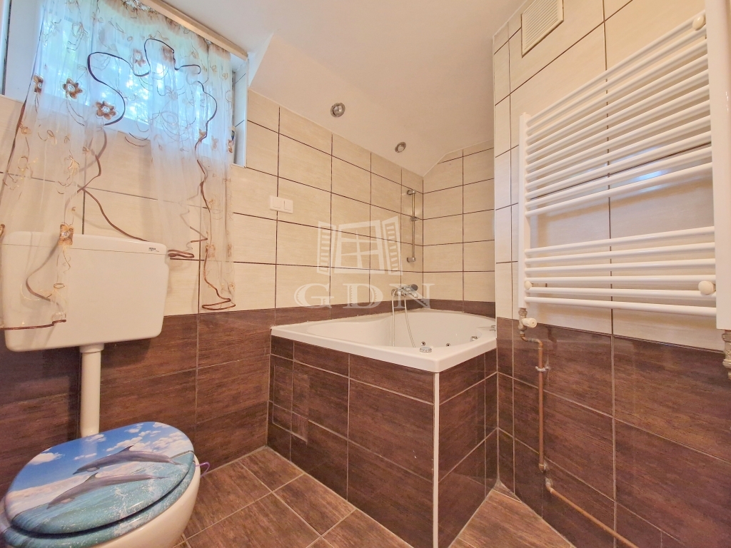 Az alsó szinten találjuk a nappalit, a konyhát és a jelenleg tárolásra használt spejz részt, valamint egy fürdőkáddal és toalettel ellátott fürdőszobát. Amennyiben új tulajdonosa még több helyiséget szeretne kialakítani, a lehetőség adott, hiszen a tetőtér (padlás) is beépíthető!