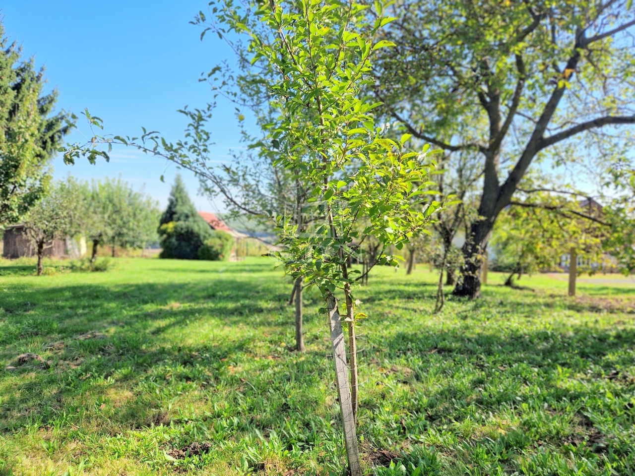 A gondozott terület többféle termő gyümölcsfának ad otthont: