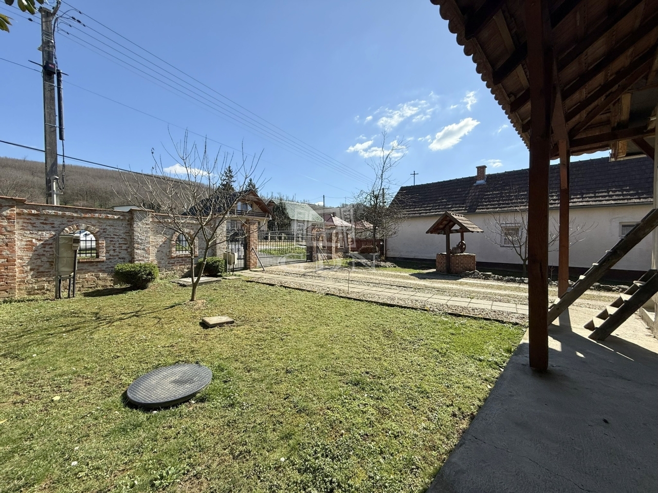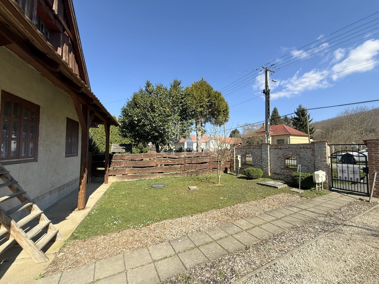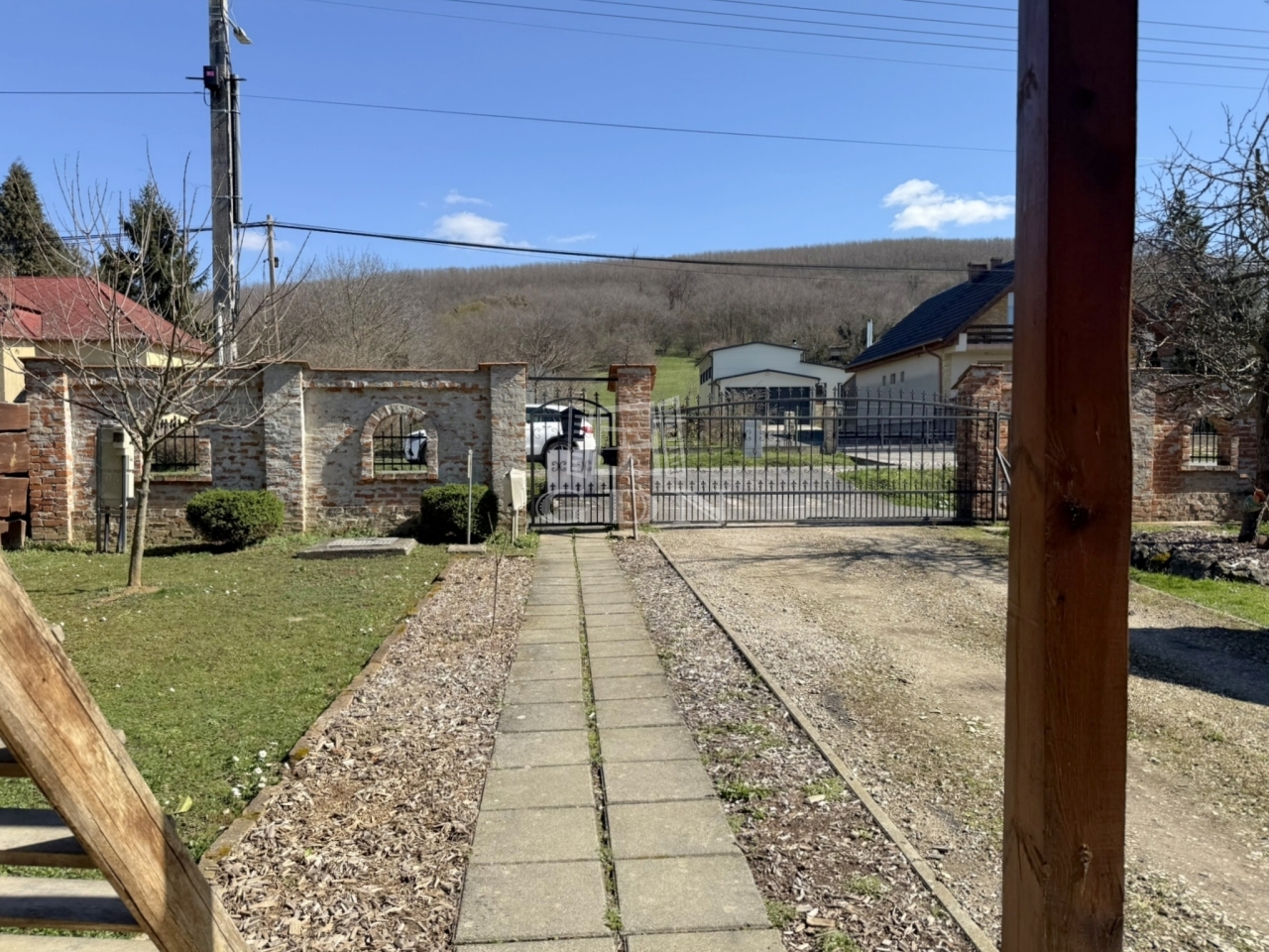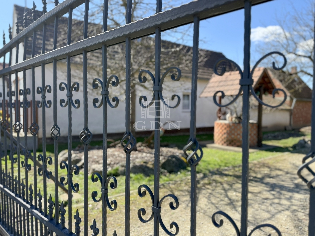 A 2388 m2 - es terület 80% - ban körbekerített, emellett impozáns kovácsoltvas kapuja sem elhanyagolható.
