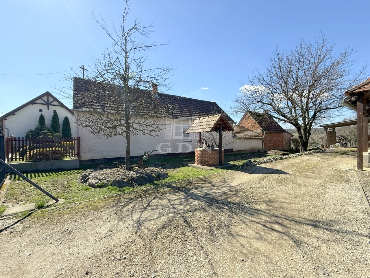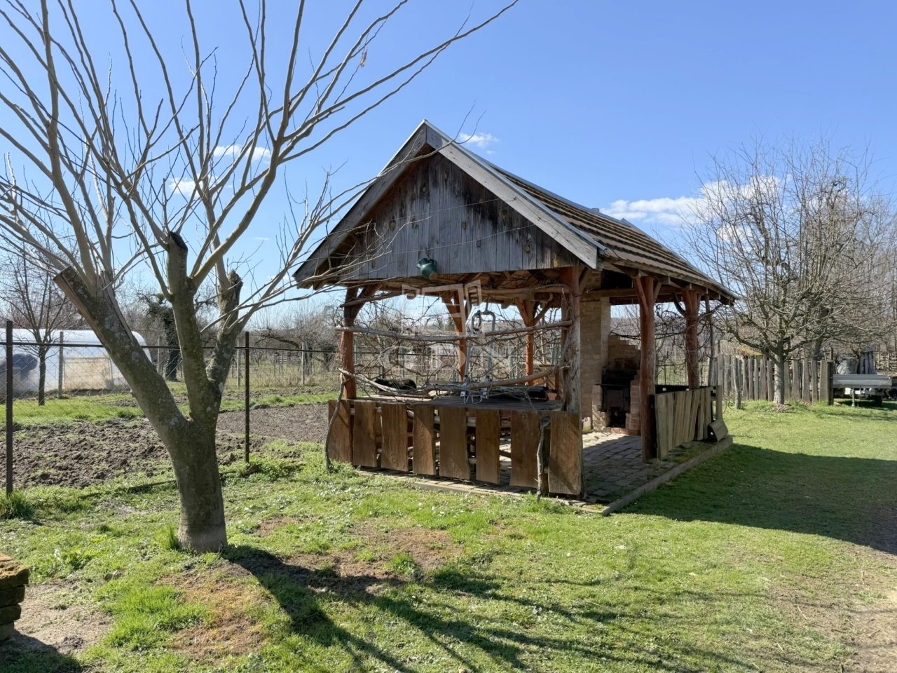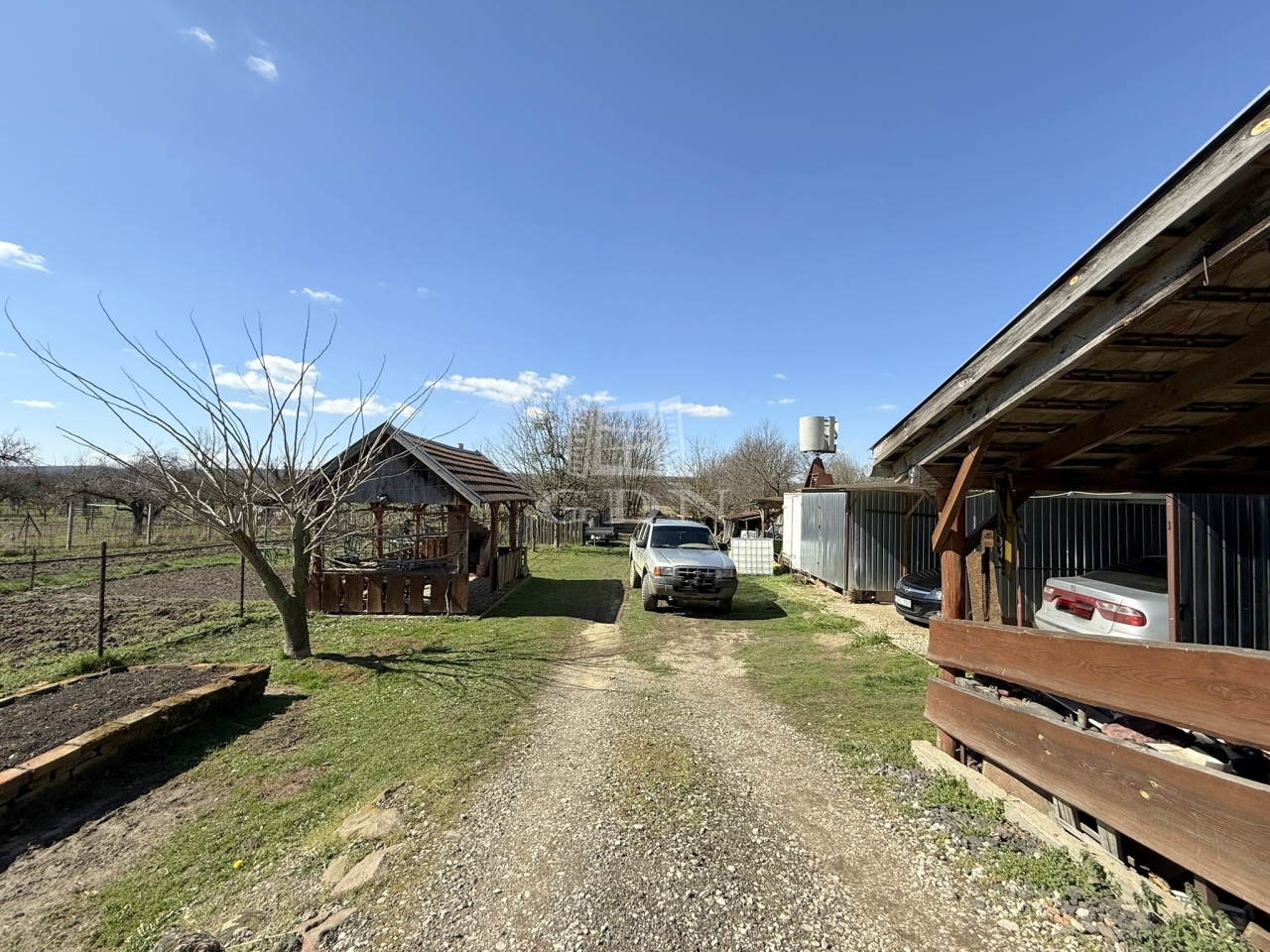 A bő vízhozamú ásott kút gondoskodik az állatok itatásáról, a gyümölcsfák az egészségről, a kis faház a családi öszejövetelekről, a garázsok és beállók pedig az autók és egyéb holmik tárolásáról.