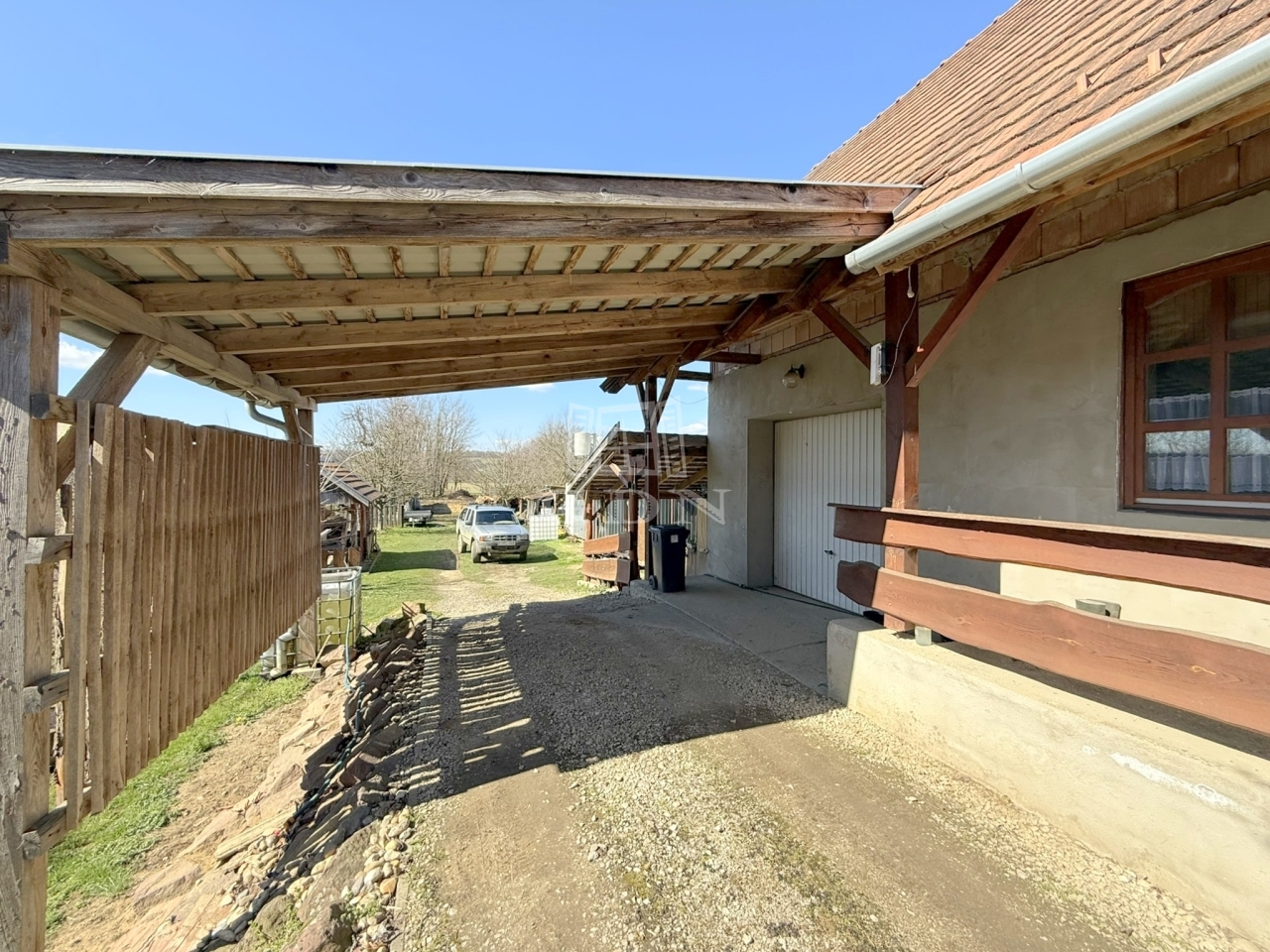 Tulajdonosa kényelméért felel még a 20 m2 - es tornác, egy féltetős fatároló, 3 garázs - melyből 2 zárható, egy szigetelt konténer, melyet szaunának kezdtek átalakítani, valamint egy 30 m2 -es, mezőgazdasági gépek számára alkalmas fedett beálló.