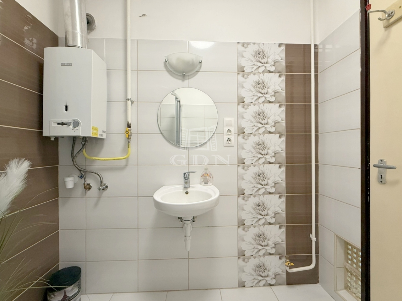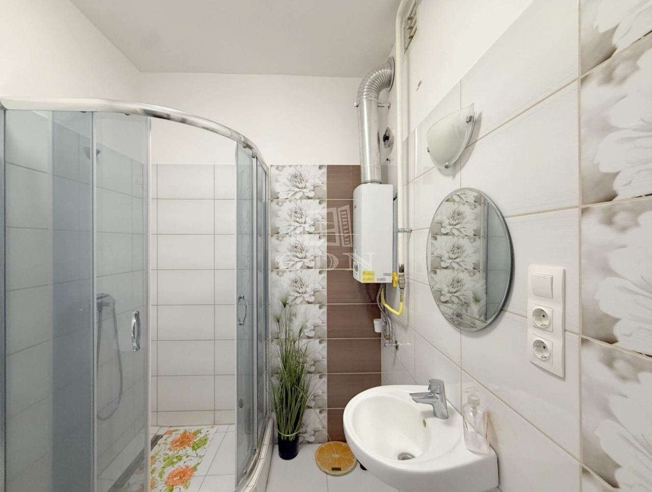 Az ingatlanban kedvező elosztásának köszönhetően találunk egy nagyméretű nappalit, egy külön nyíló hálót, egy nagy üvegfelülettel bíró, világos konyha - étkezőt, egy ebből nyíló spejz helyiséget, egy zuhanyzóval felszerelt fürdőt, egy külön helyiségben található toalettet, valamint egy tágas, előtérrel egybekötött folyosót, melyben nagyméretű szekrény biztosít helyet a nem minden nap használt dolgainknak.