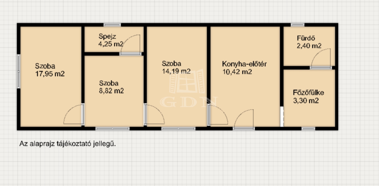 - 62 m2-en ad helyet egy előtér - konyha együttesnek, 3 szobának, egy főzőfülkének, egy spejznek, valamint egy zuhanyzóval és toalettel felszerelt fürdőnek.